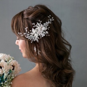 セラミックのフラワーとビーズのかすみ草のフラワーヘッドドレス