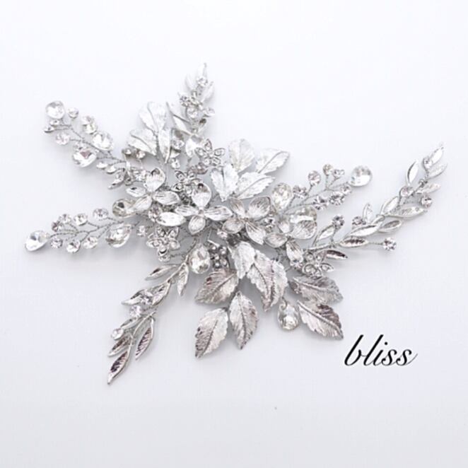 H-047 ウェディング アクセサリー【 小枝 シルバーフラワー&リーフ ヘッドドレス 】ブライダル 髪飾り