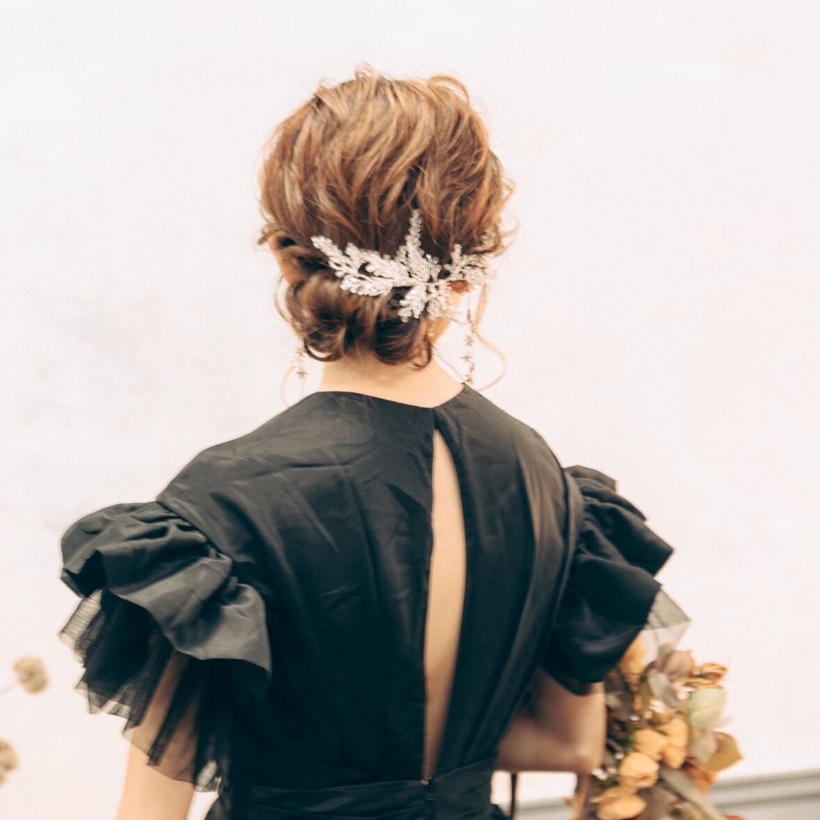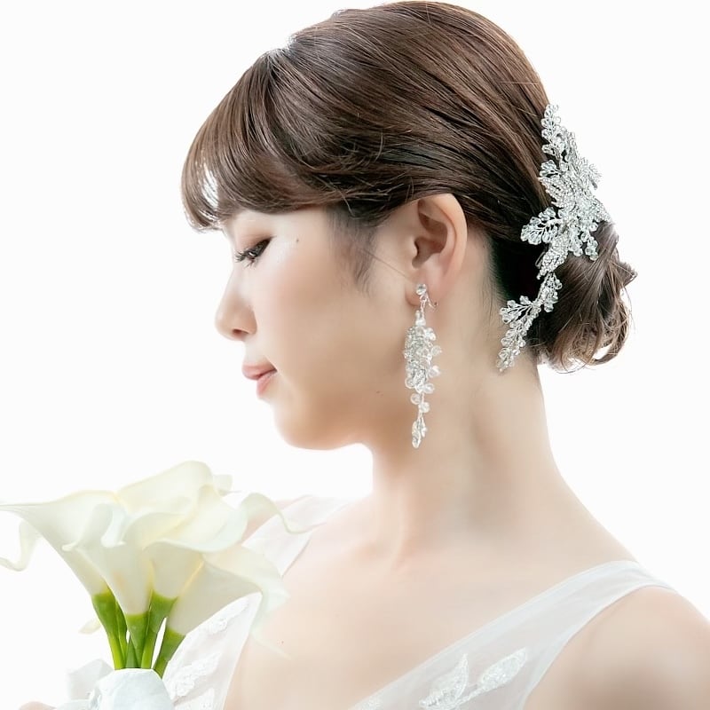 H-090 ウェディング アクセサリー【ビジュー リーフ クリスタル ヘッドドレス】ブライダル 髪飾り