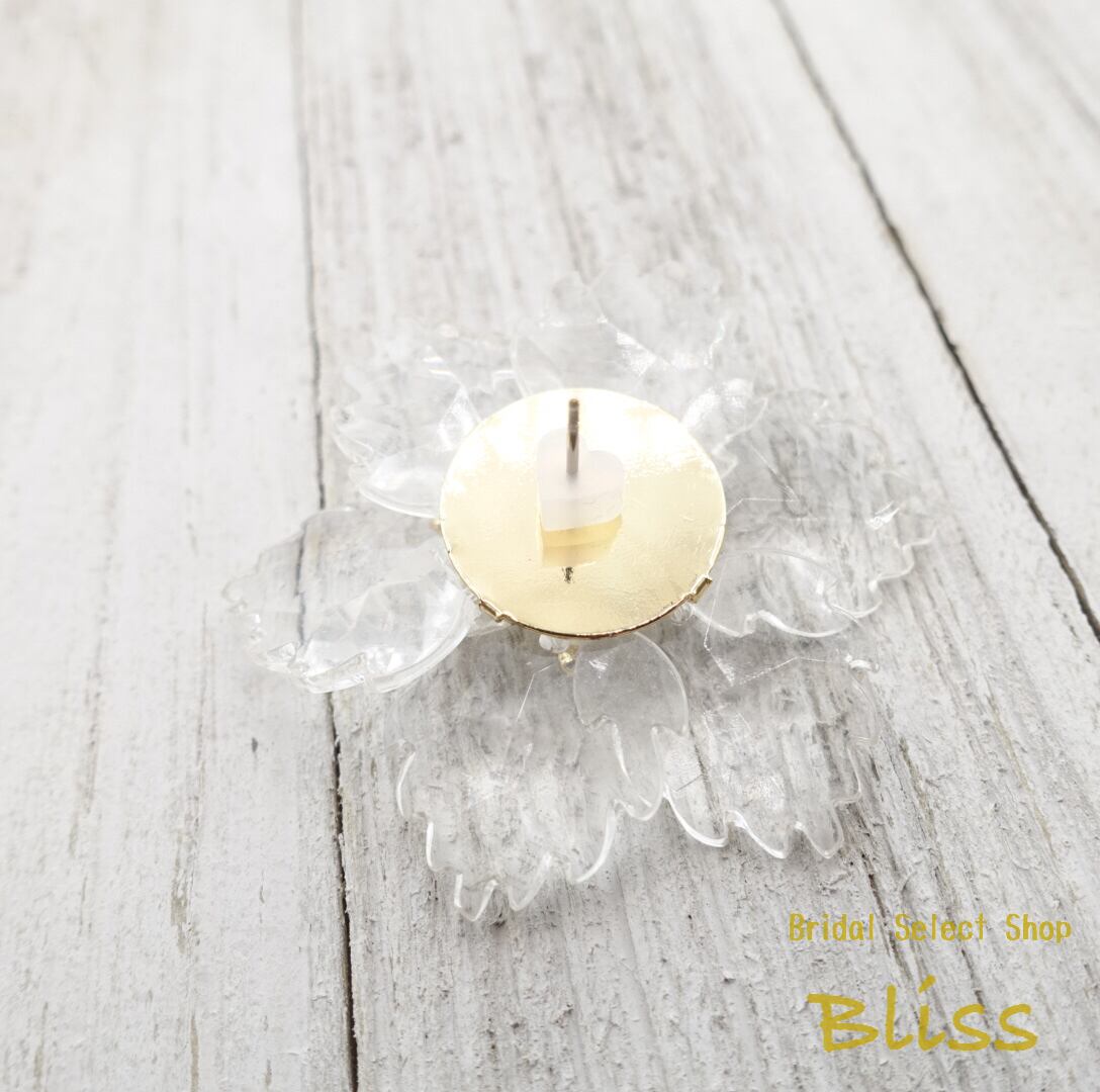 E-182 ウェディング アクセサリー【クリア フラワー スタッド ピアス】ブライダル