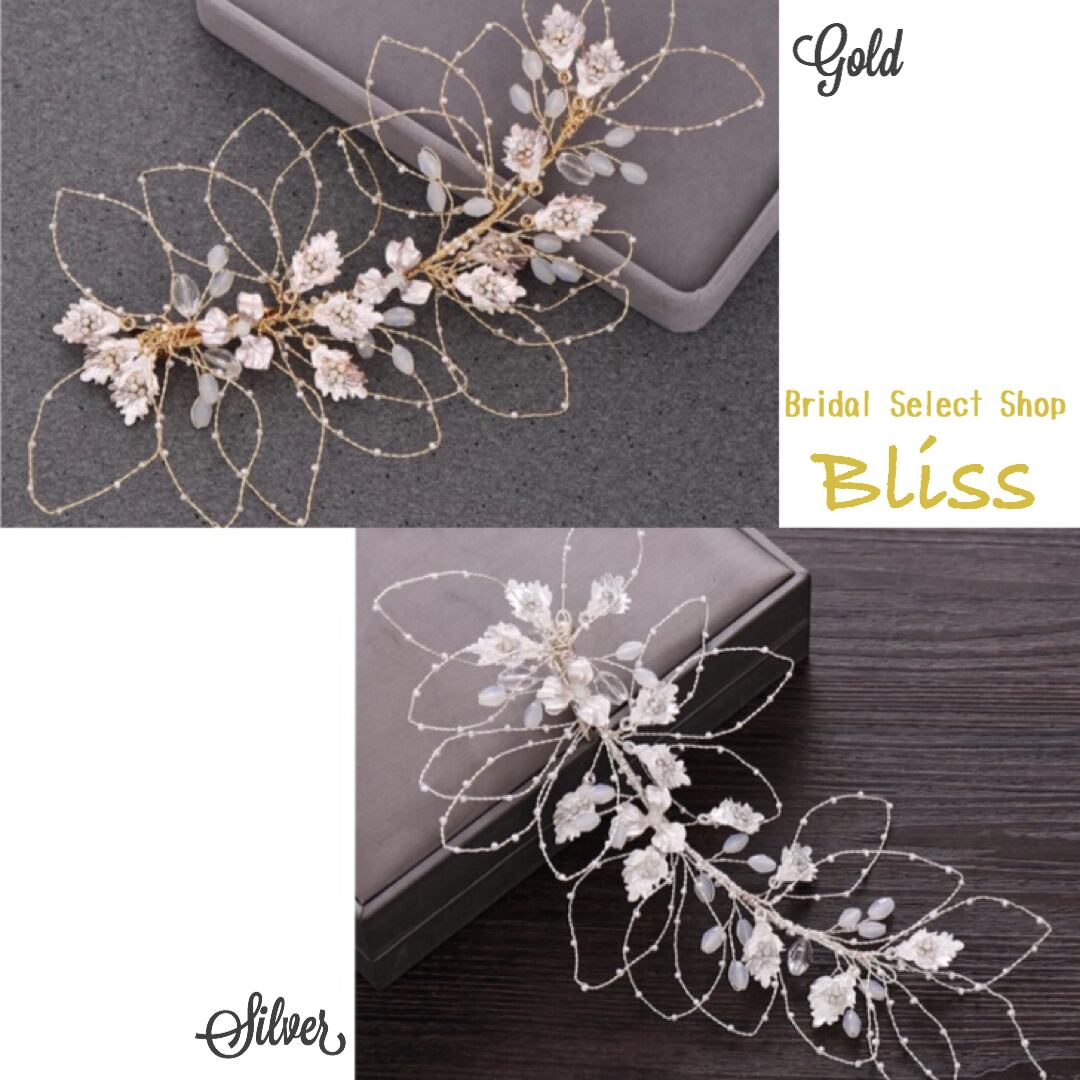 H-096 ウェディング アクセサリー【ラグジュアリー 透かし リーフ ヘッドドレス(シルバー or ゴールドより選択)】ブライダル 髪飾り