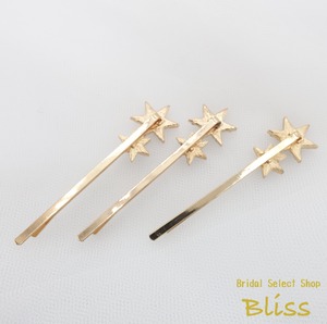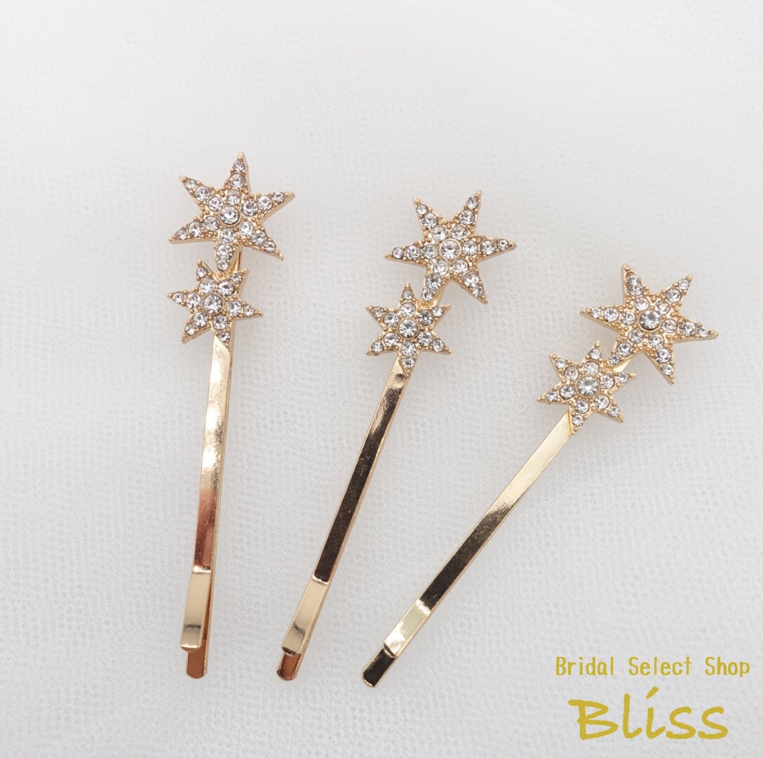 H-199 ウェディング アクセサリー【スター 2連 ビジュー ヘアピン 3本セット 六芒星(シルバー or ゴールドより選択)】ブライダル 髪飾り