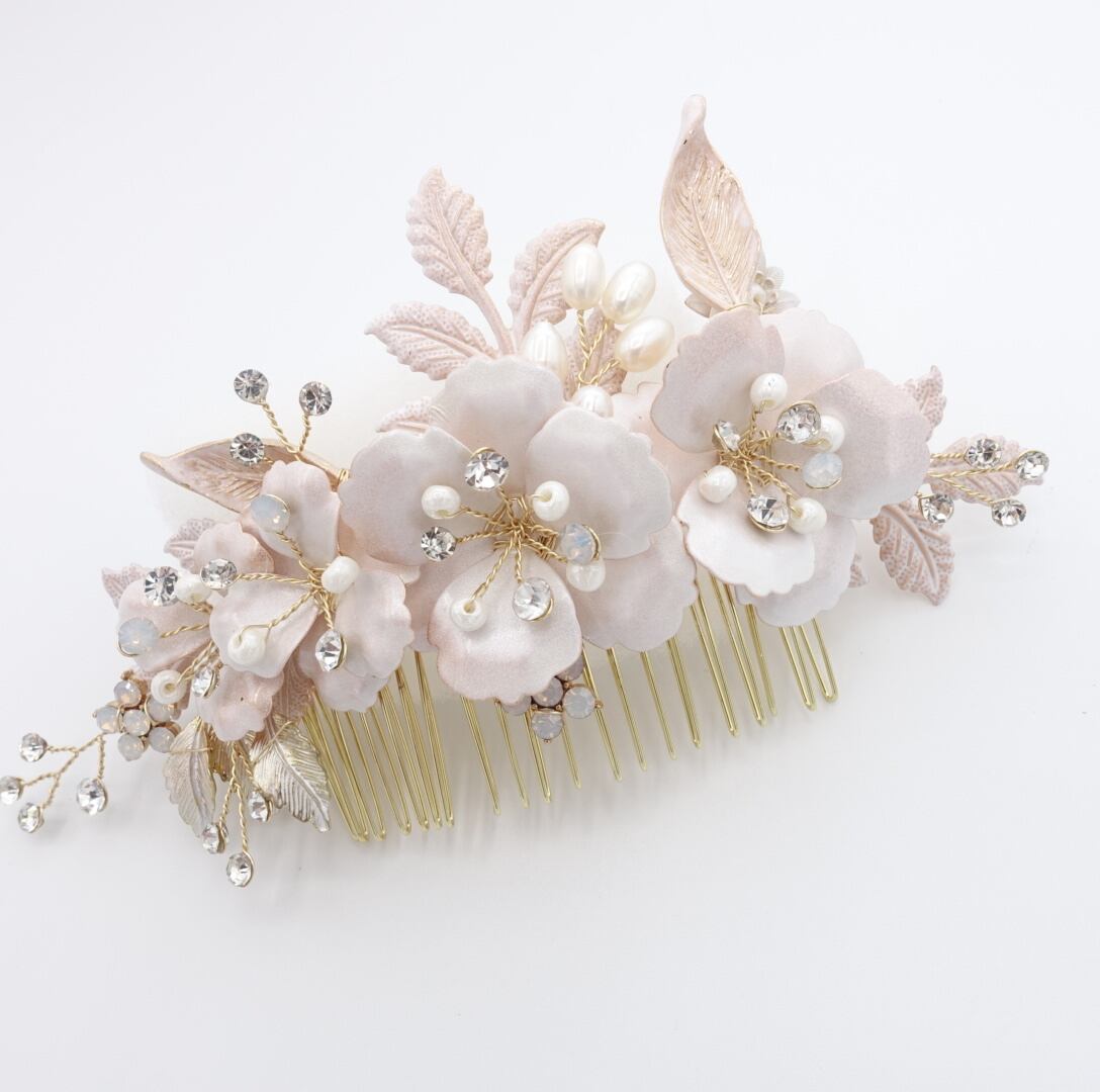 H-130 ウェディング アクセサリー【ミルキー ピンク フラワー ヘッドドレス】ブライダル 髪飾り