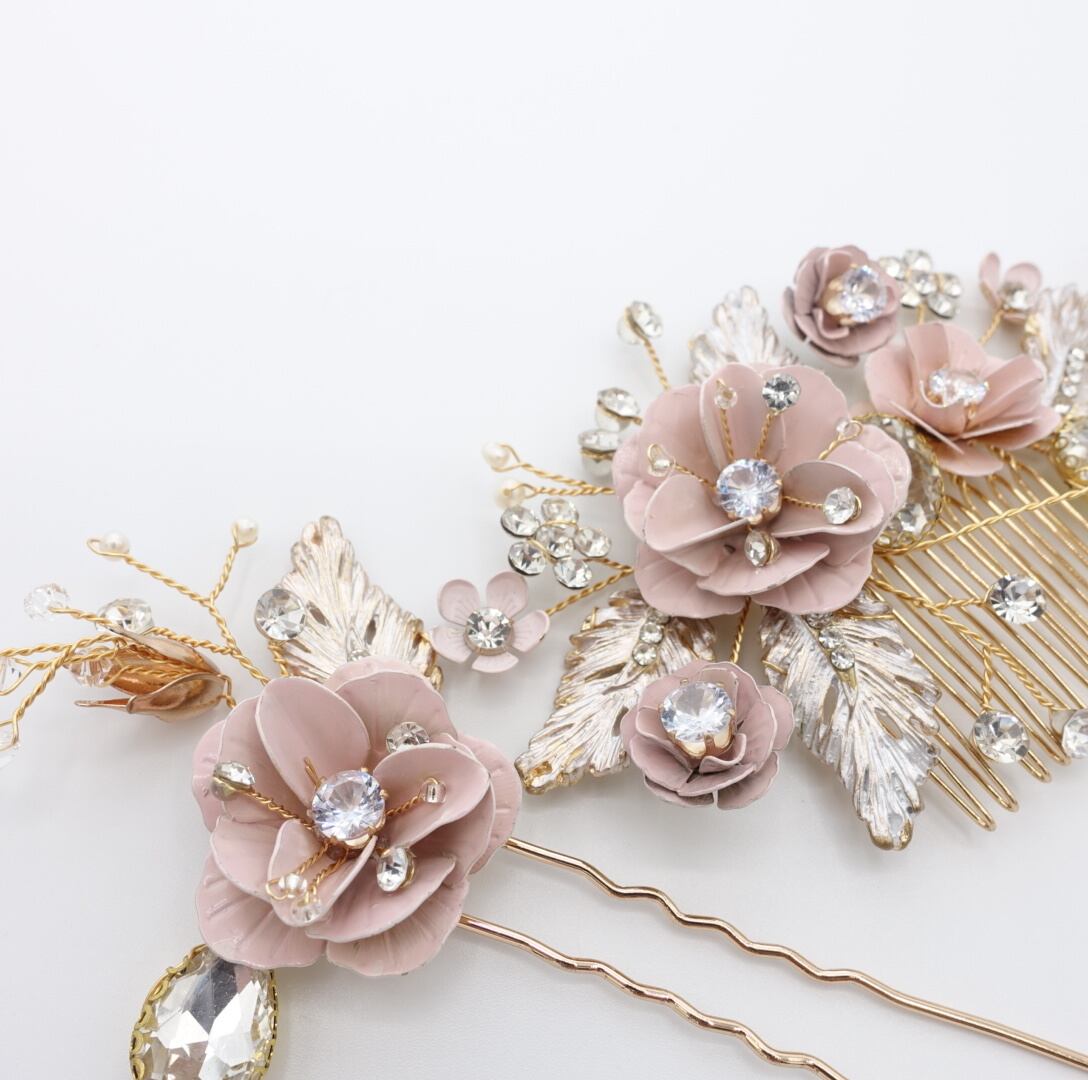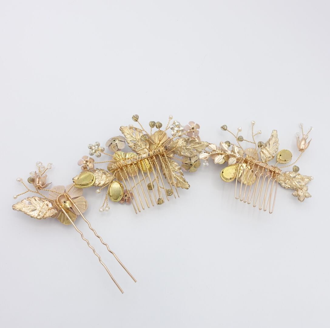H-127 ウェディング アクセサリー【アンティーク ローズ 3P ヘッドドレス】ブライダル 髪飾り