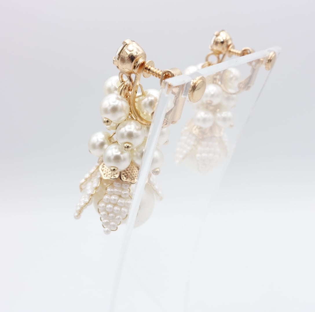 パール & ビーズ フラワー ドロップ イヤリング(or ピアスより選択)