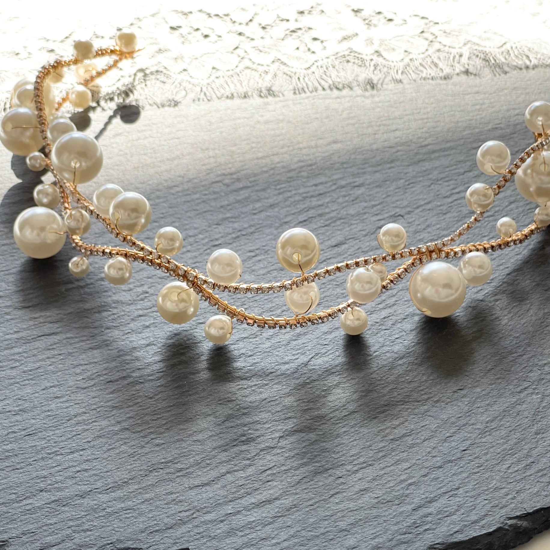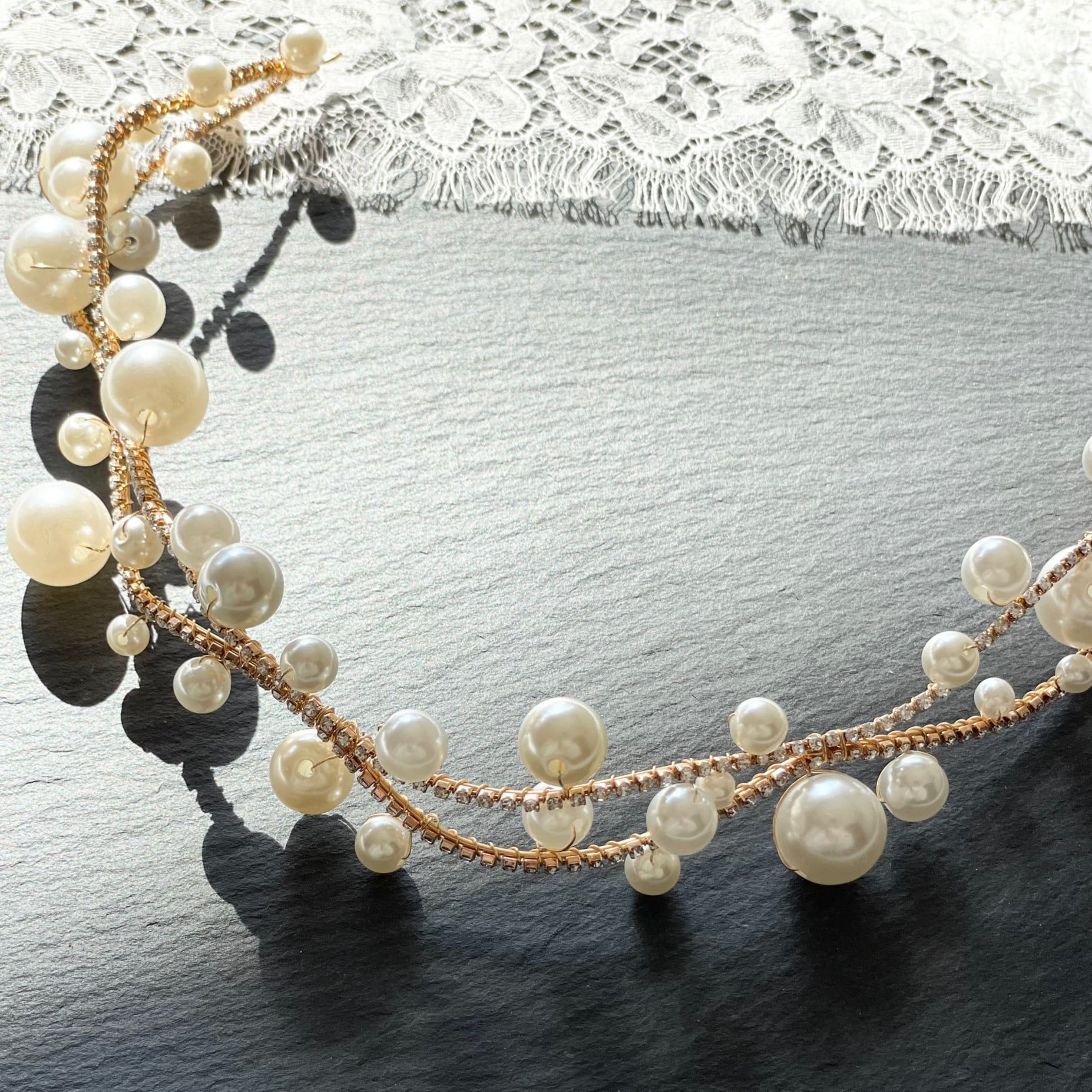H-163 ウェディング アクセサリー【 パール&ビジュー ゴールド ヘッドドレス 】ブライダル 髪飾り