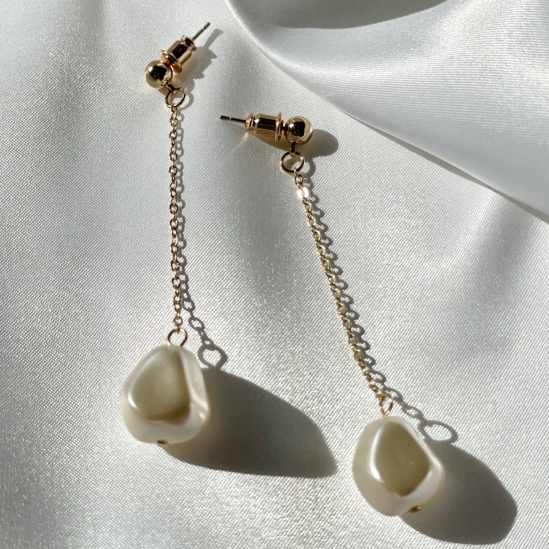 華奢なゴールドのチェーンに大粒のパールが揺れます