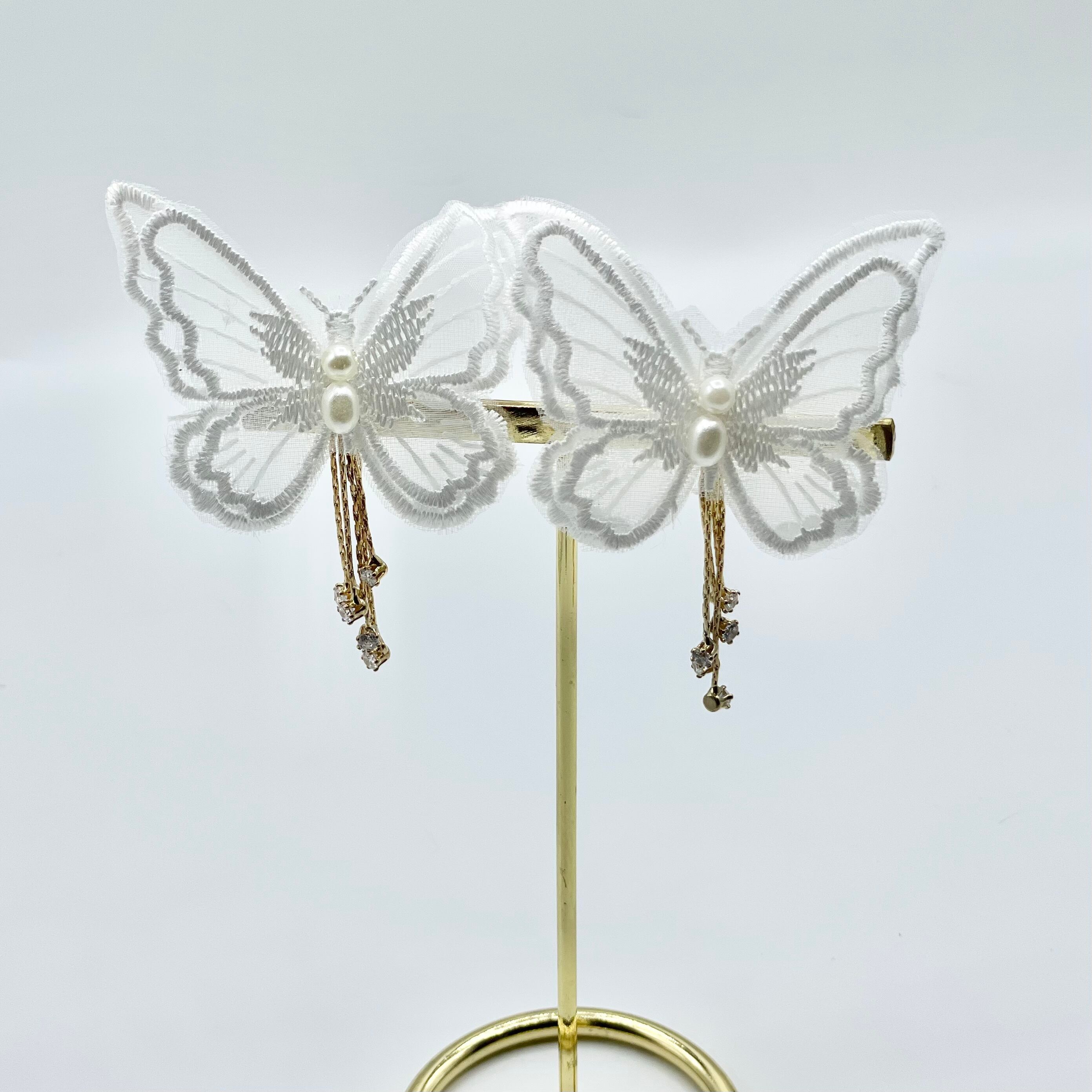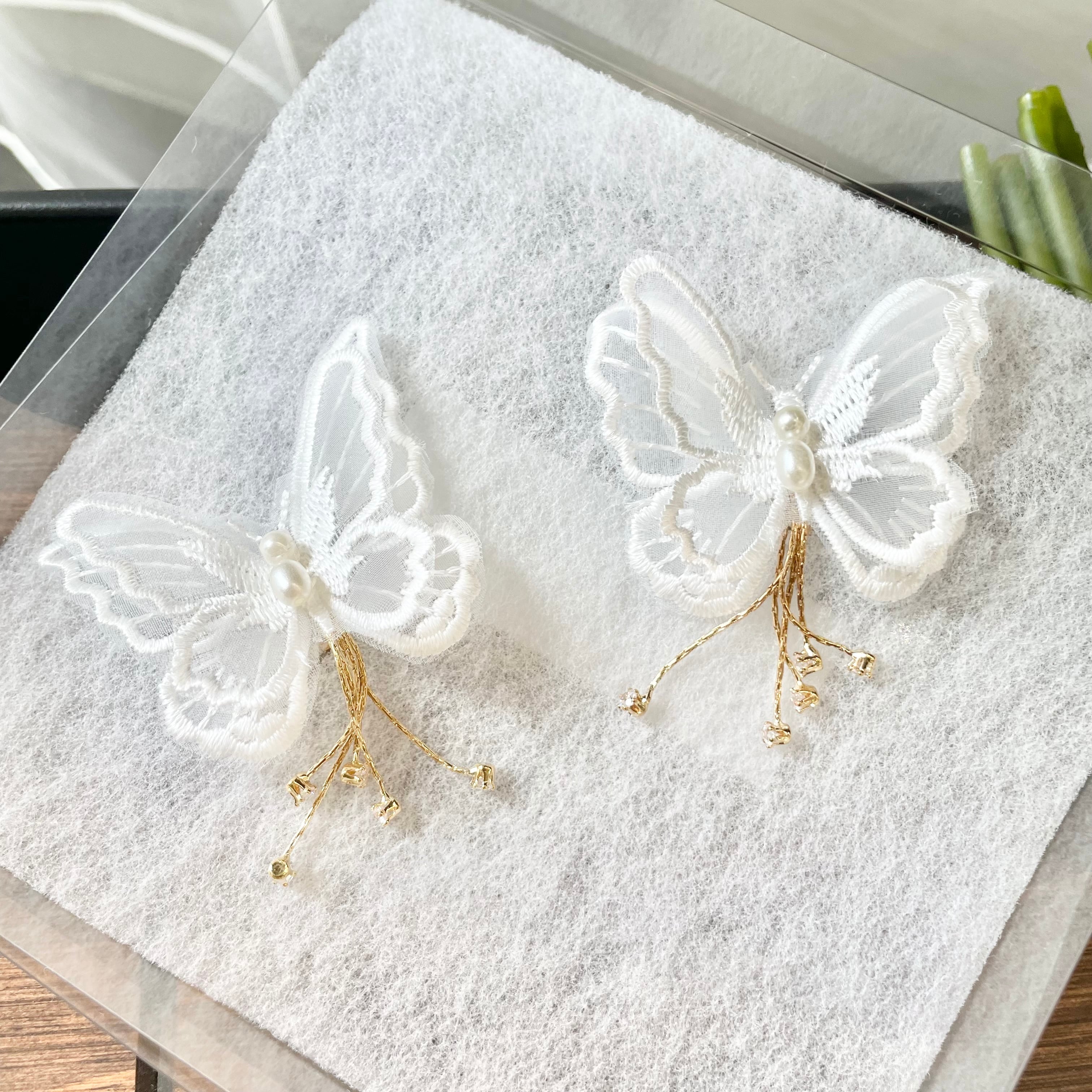 ケミカルレースを使用したバタフライモチーフのイヤリング(or ピアスより選択)